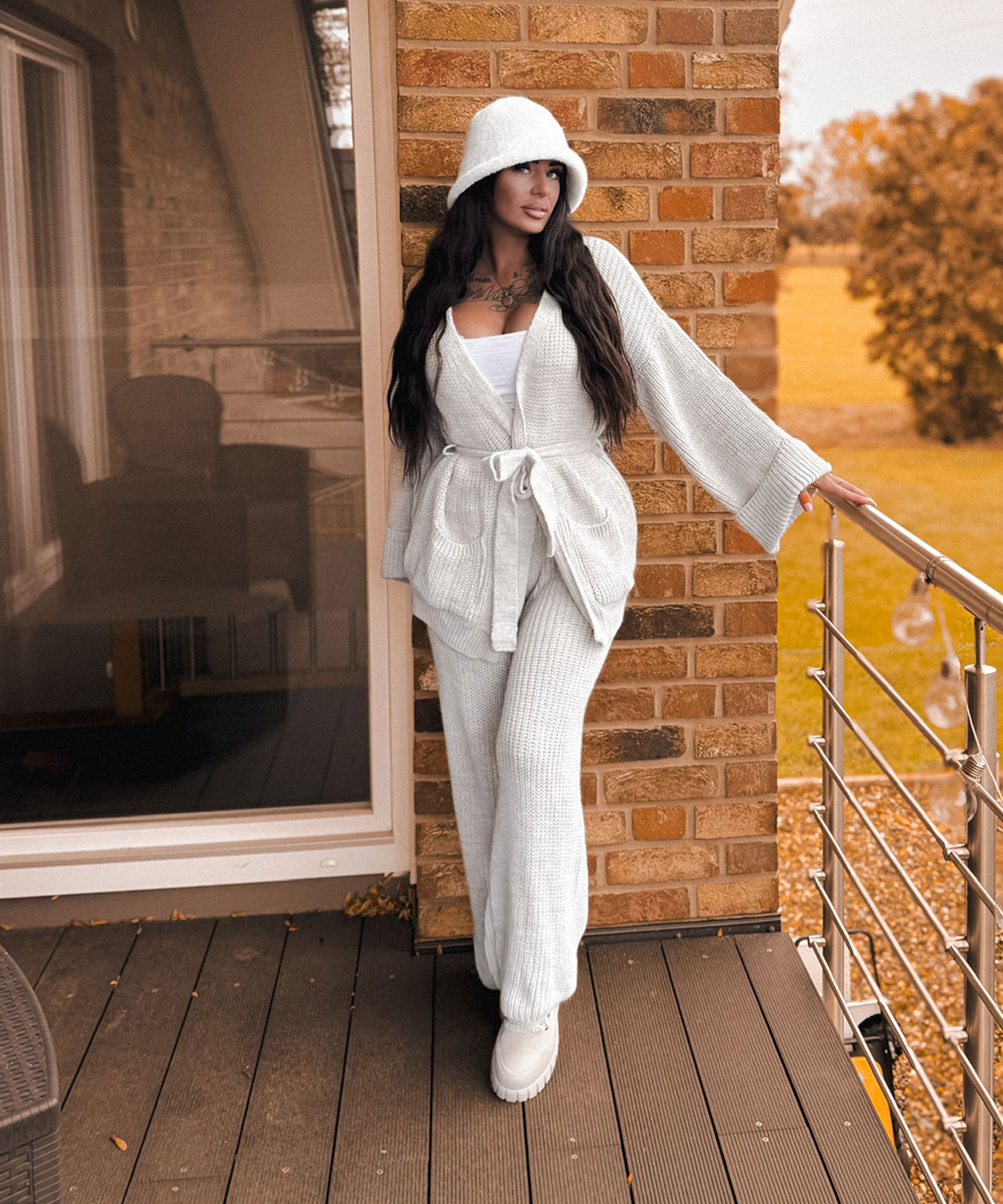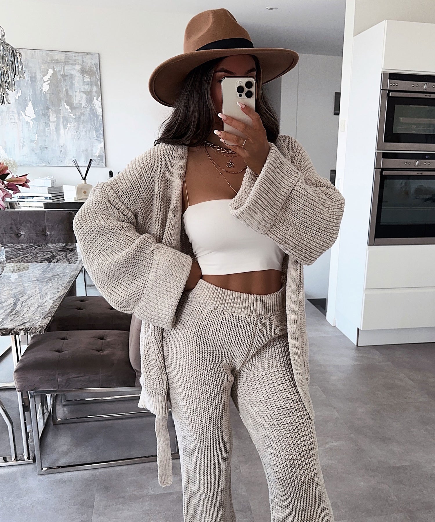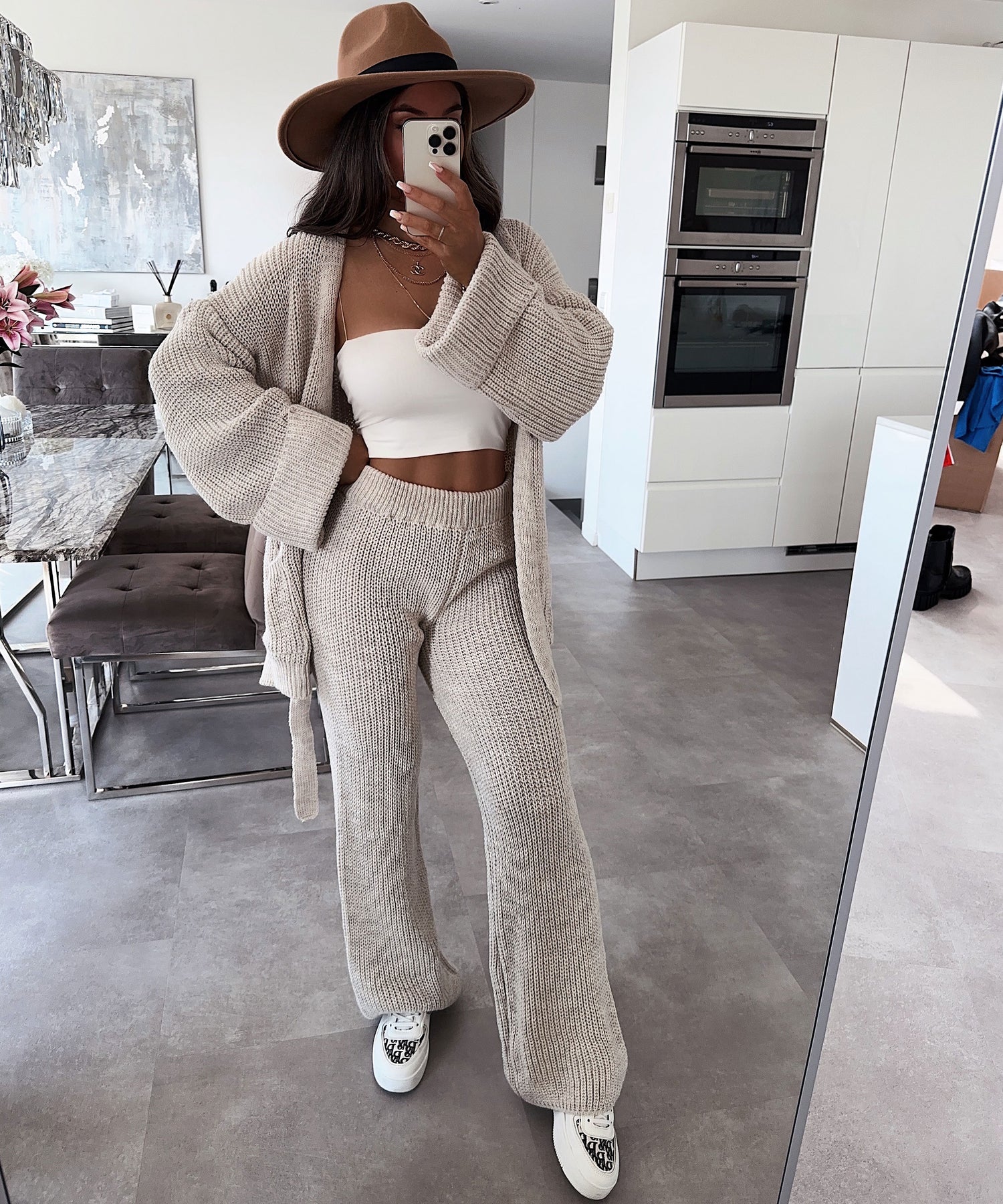 Super weiches Strick Set. Was auch tolle einzeln getragen werden kann. Model ist 1,65m. Einheitsgröße passt XS-XL. Hosen Gesamtlänge ca. cm.