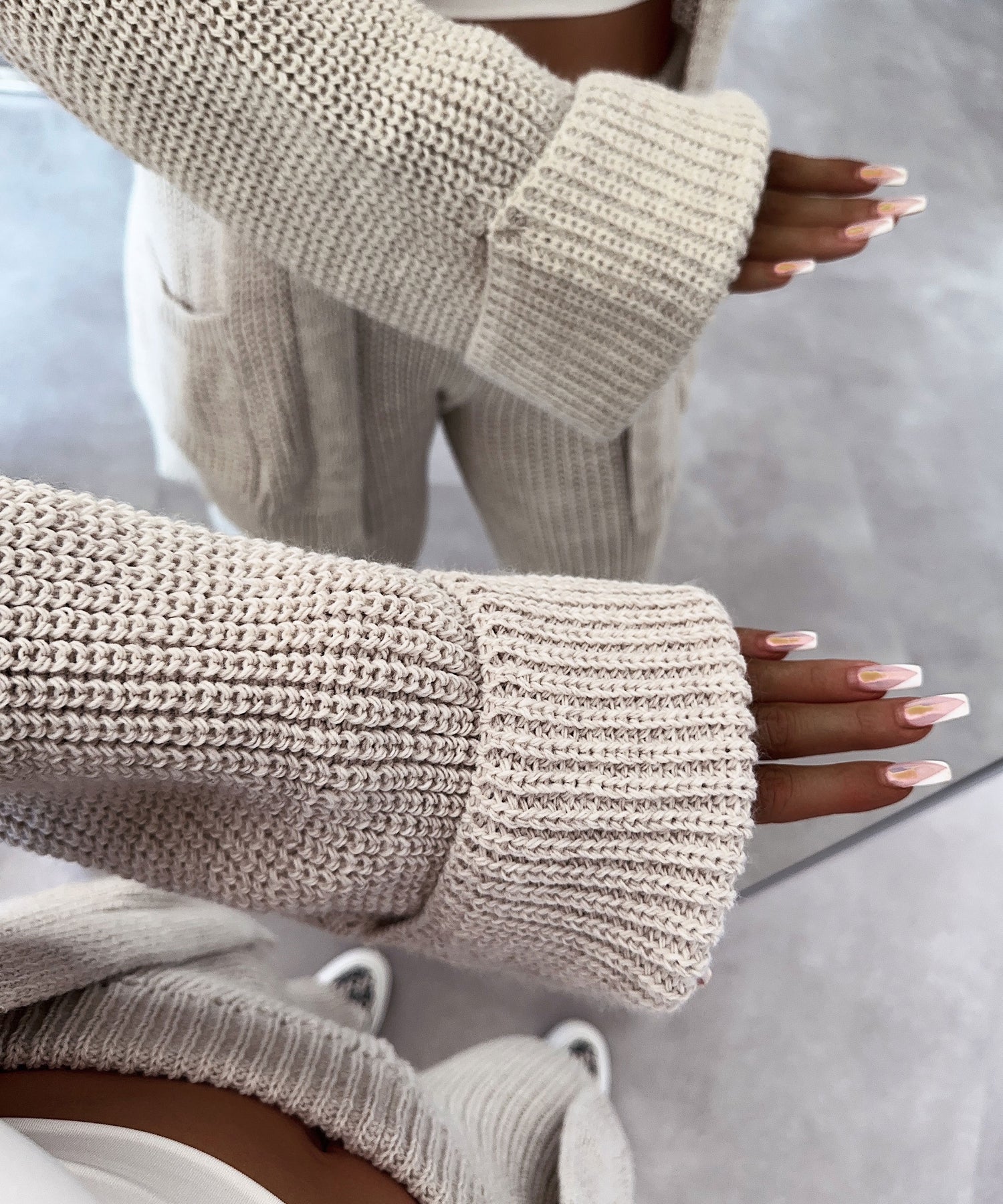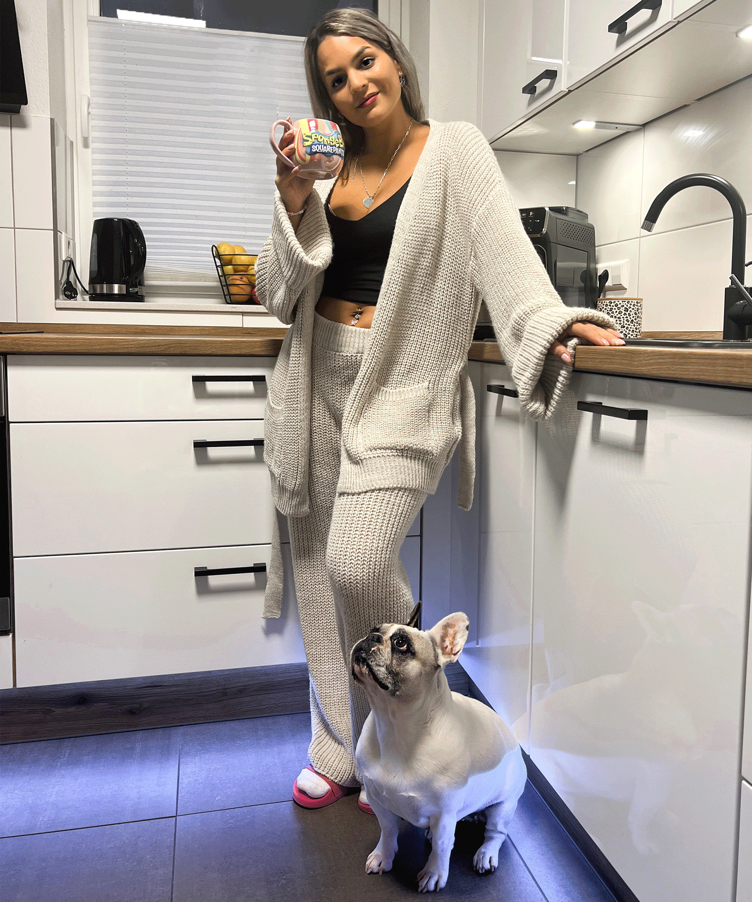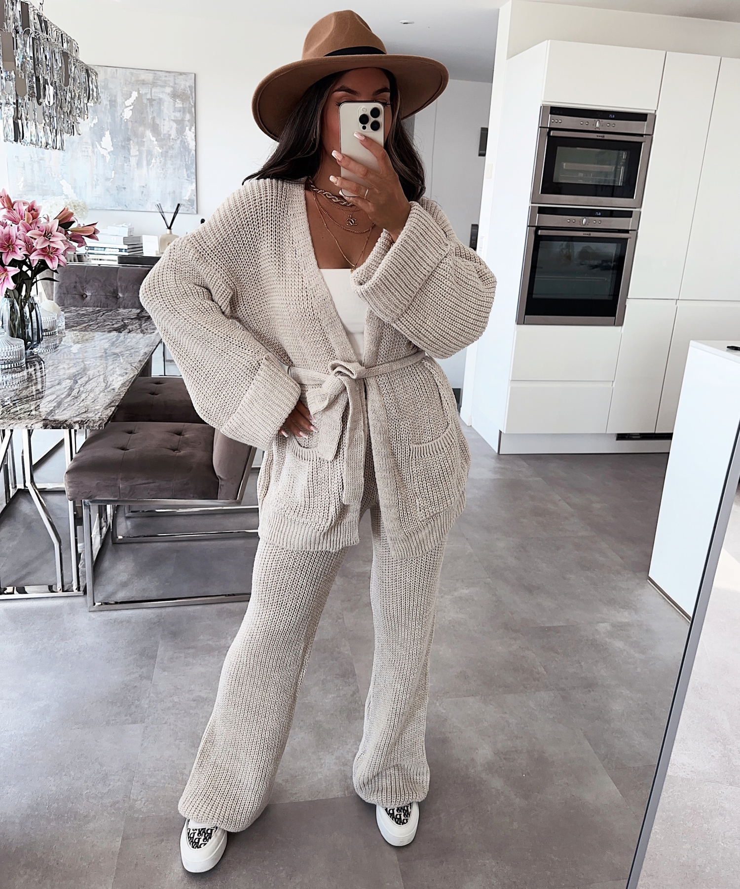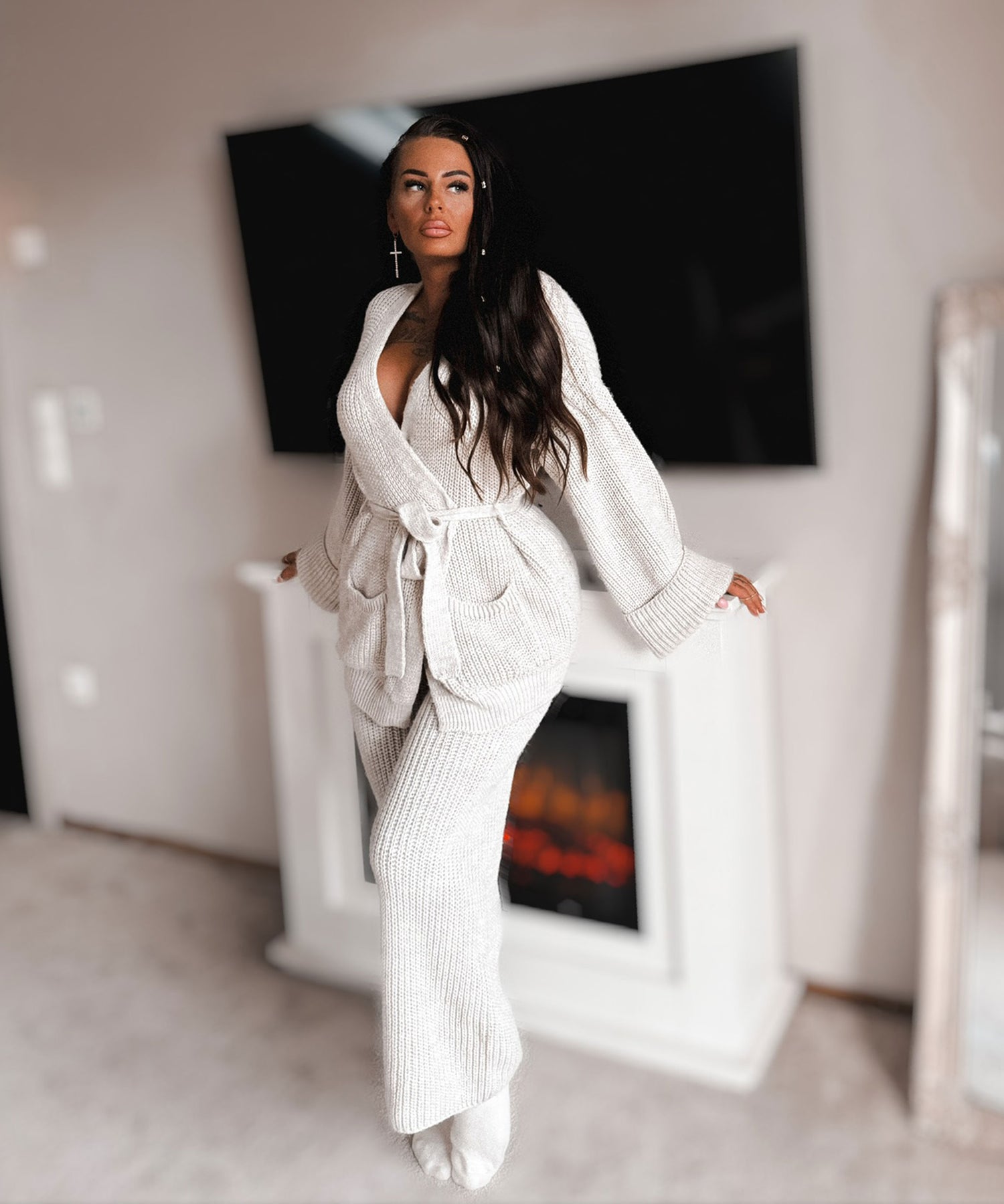 Super weiches Strick Set. Was auch tolle einzeln getragen werden kann. Model ist 1,65m. Einheitsgröße passt XS-XL. Hosen Gesamtlänge ca. cm.