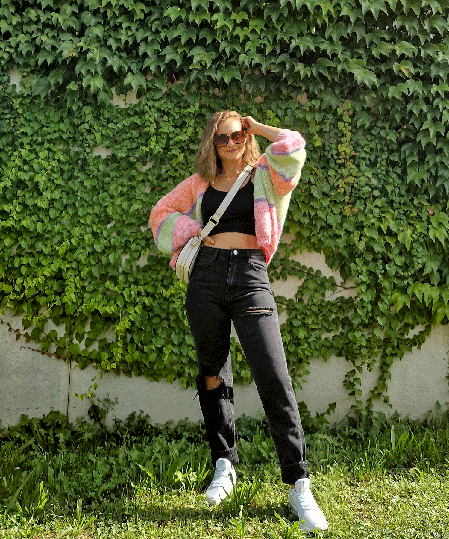 Super weiche, kuschlige Strickjacke. Passt den Größen XS-XXL. Model ist 1,65m groß.