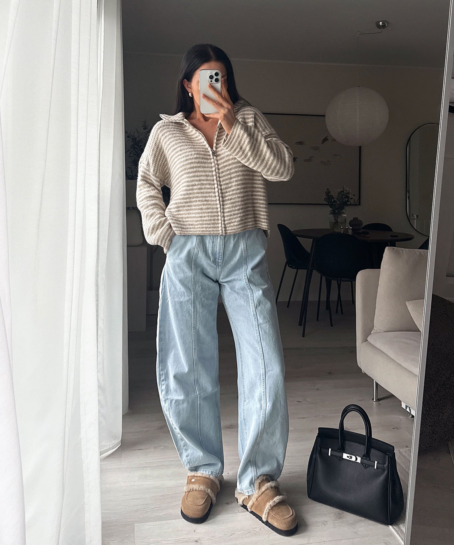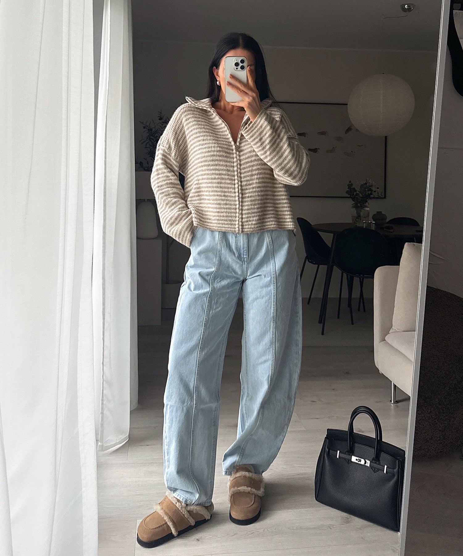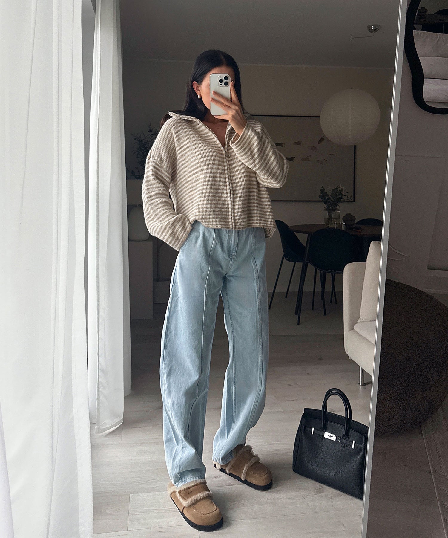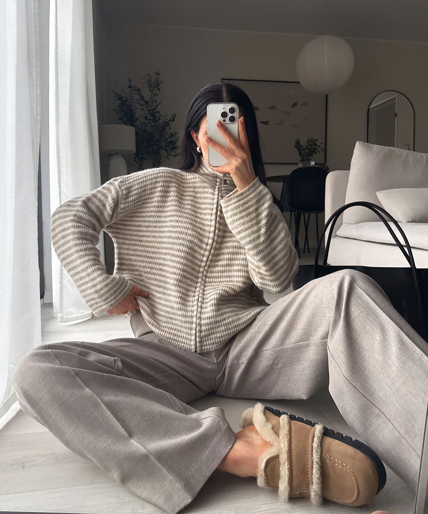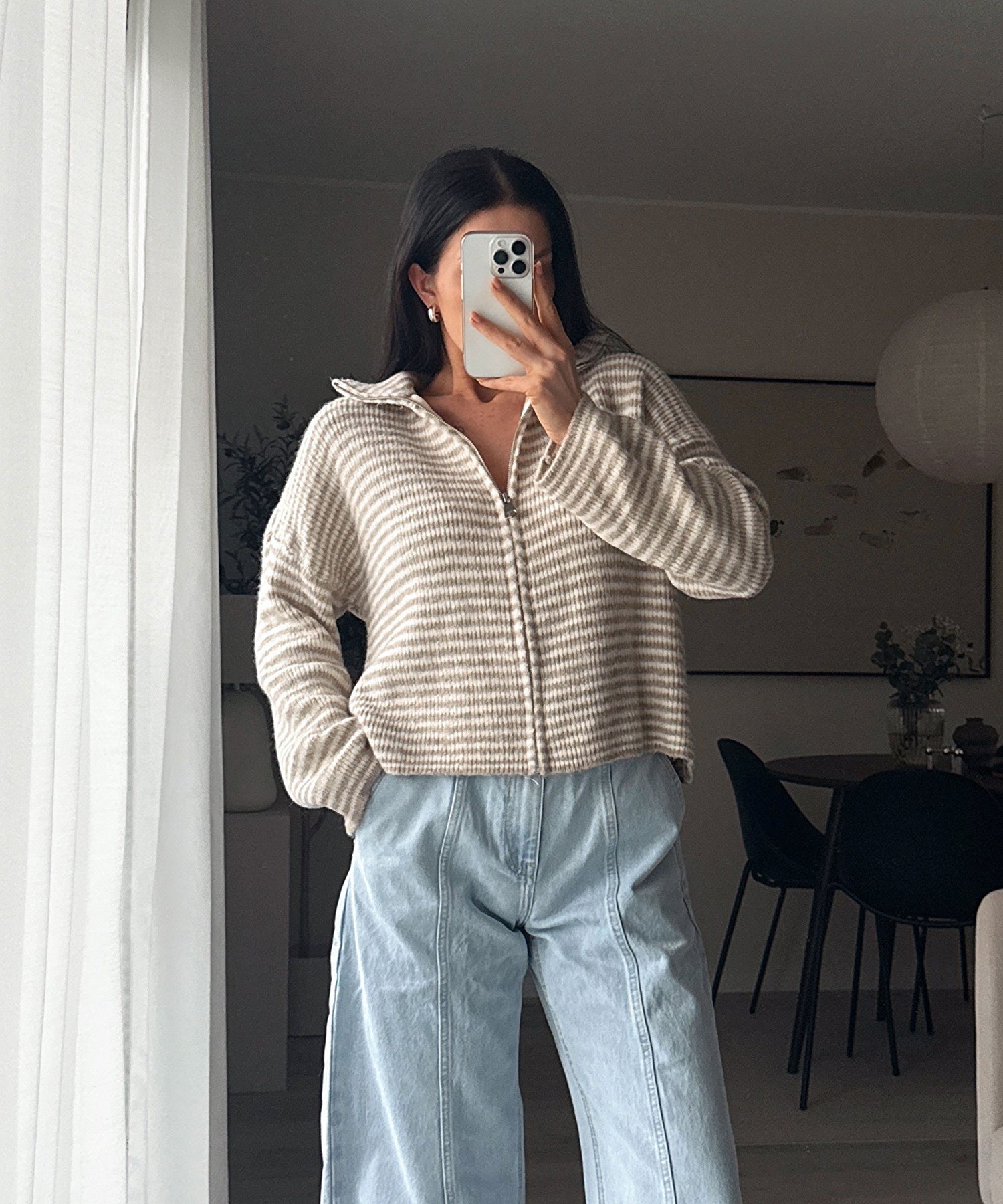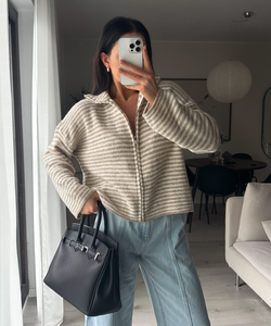 Zip Strickjacke Helena Streifen Taupe Ladypolitan ♡